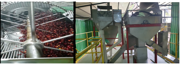 5. 첨단 장비를 사용해 커피 손상이 최소화 된 디펄핑(과육 제거) 작업을 진행합니다.