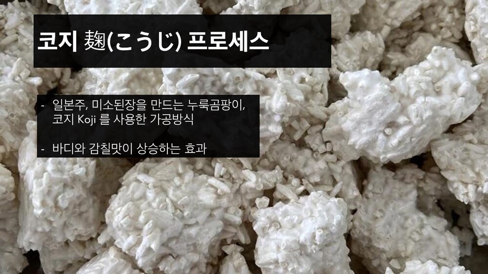 코지는 일본주, 미소된장을 만드는 누룩곰팡이로 코지 프로세스는 해당 미생물을 사용해 커피를 발효시키는 방법입니다. 기존의 효모 발효 방식과 비교해 바디와 감칠맛이 대폭 상승하는 것이 특징입니다.